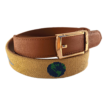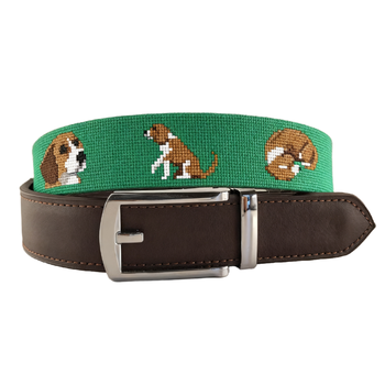 Custom Blue Dog Needlepoint Cinturones Hecho a mano de cuero genuino Costura